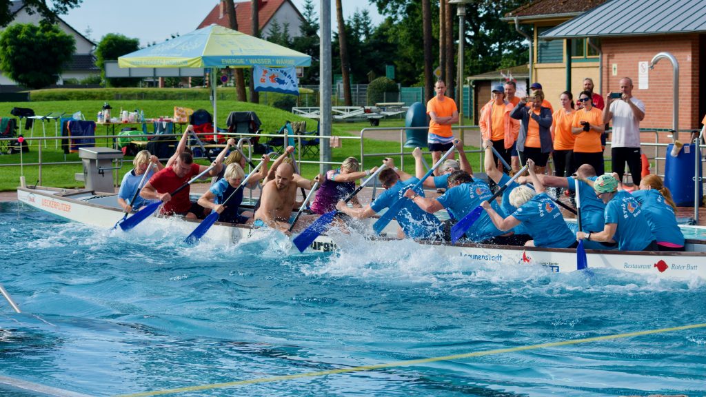 Wir laden Vereine, Unternehmen, Freundeskreise, Schulklassen ein, beim Indoor-Cup 2026 das Wasser des Torgelower Heidebades aufzuwühlen. Je Team sitzen sich bis zu 8 Paddler:innen – davon mindestens 2 Frauen – gegenüber und versuchen, die gegnerische Mannschaft über die Ziellinie zu schieben – quasi wie Tauziehen, nur schiebend und wahrscheinlich nasser.